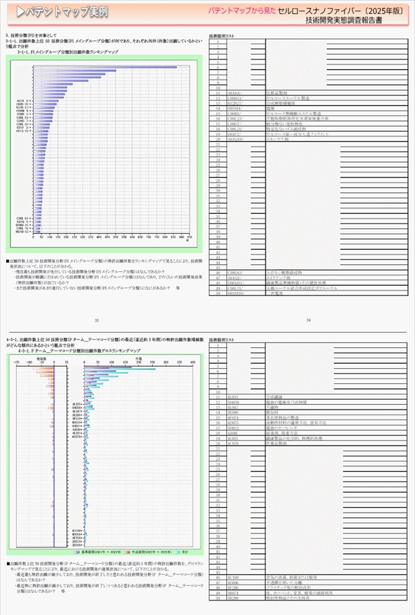 本調査報告書は「セルロースナノファイバー」の国内出願日:2015年1月から2025年8月までに出願された公開特許について、検索、収集した。